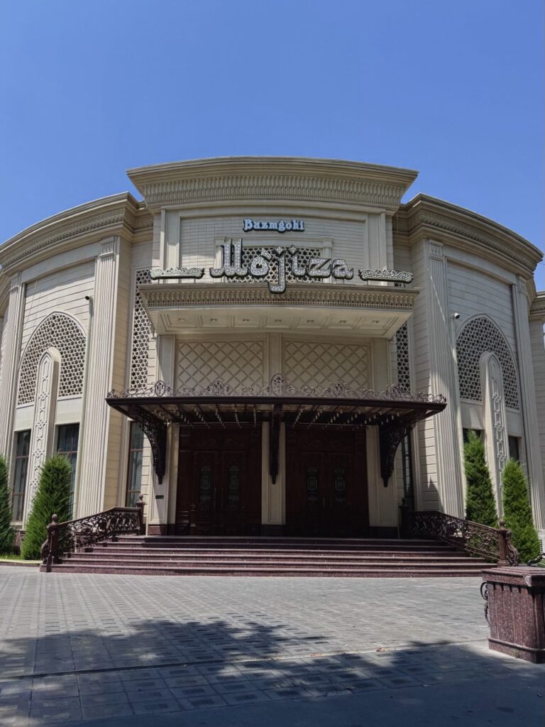 Bangunan modern yang sering dilewati dalam rute kota. Bukan situs bersejarah, tetapi memberi konteks kontras antara Samarkand hari ini dan Samarkand masa lalu. Dari jalur inilah, kami berjalan menikmati kota yang tenang dan lengang. Di sepanjang jalan bisa ditemui toko dan coffee shop juga, untuk setiap pembayaran aku selalu menggunakan kartu Jenius yang bisa satset dan mudah diterima.
