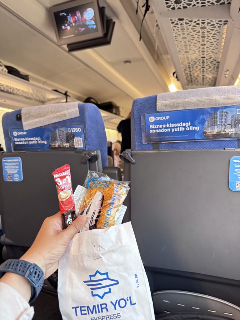 Dan ya, perjalanan kami yang penuh cerita bermakna ini harus berakhir di sini. Bersiap kembali ke Tashkent dengan kereta cepat Temir Yol Express dengan fasilitas kerennya, walaupun jadwal keberangkatan sempat tertunda 1,5 jam karena cuaca ekstrim yang super hot ini!