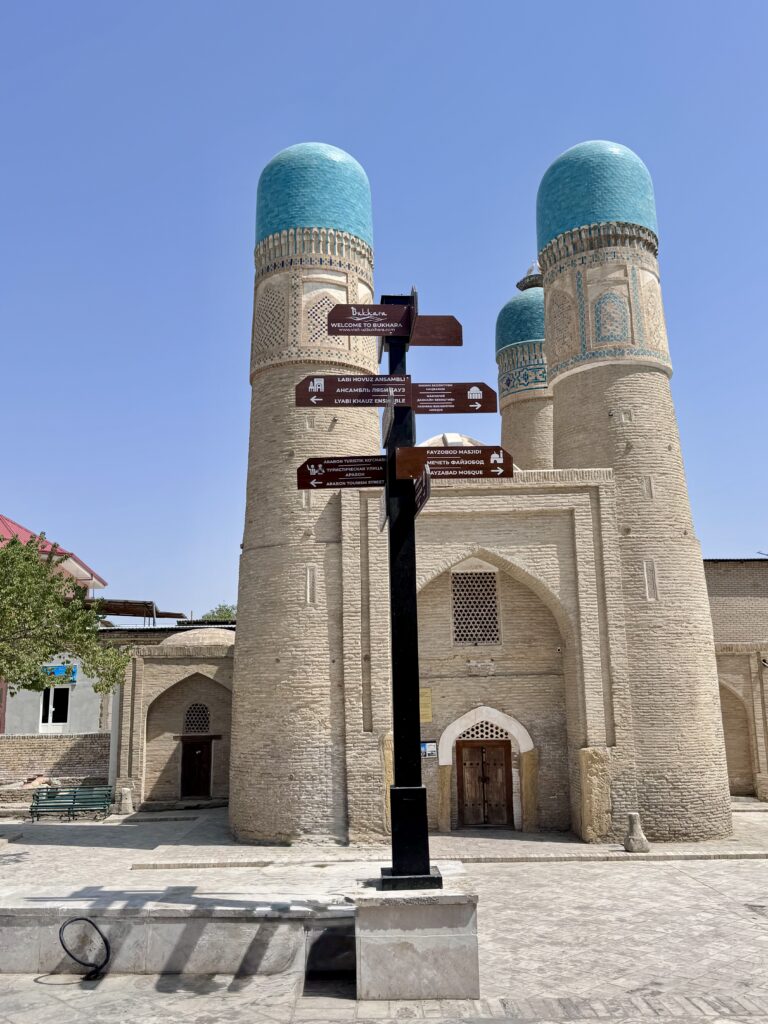 Salah satu ikon paling unik di Bukhara! Bangunan dengan empat menara berkubah biru yang dulunya bagian dari kompleks madrasah, tapi sekarang berdiri sendiri dan sering disebut “Masjid kecil empat menara”. Di sekitar area Chor Minor ini, banyak ditemukan toko-toko antik atau “Museum tanpa label”, letaknya agak tersembunyi dari jalan utama, masuk gang-gang kecil yang menjadikan daya tarik tersendiri bagi turis yang datang.